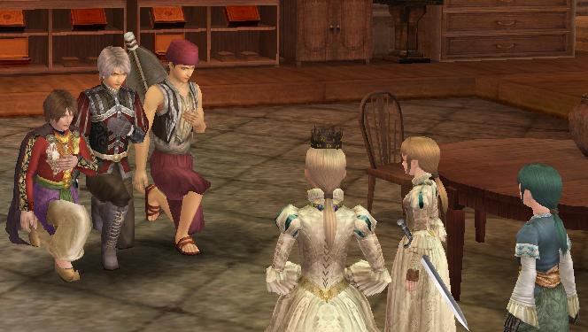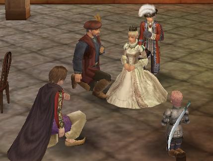 ↓おかしな男3人とそれを見つめる女性陣(アルルさんは花嫁衣裳でなぜか帯刀w
